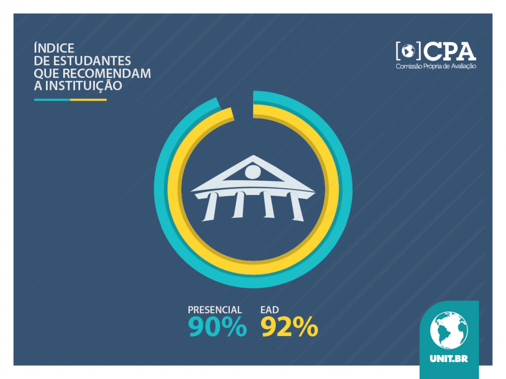 Quem estuda na Universidade Tiradentes, indica. Isso é o que revela a Avaliação Institucional 2015. A última edição da pesquisa foi respondida por 4.810 alunos de cursos a distância e presenciais. Na Unit EAD, 92% dos estudantes afirmaram que indicam a instituição para outras pessoas. Na modalidade presencial, o percentual é de 90%.