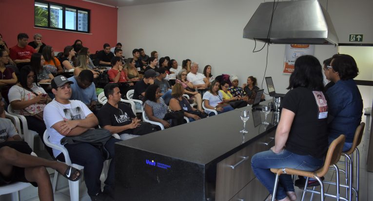 Em um bate-papo bastante descontraído, os egressos, Jorge Costa, proprietário da Churrascaria Fuego e Jorge Costa Buffet, Andreza Machado, chef do restaurante Score Bar e Alane Domingues, da Casa Domingues, falaram sobre a experiência no mercado de trabalho. “Foi um momento muito produtivo, os alunos interagiram bastante”, comenta a docente.