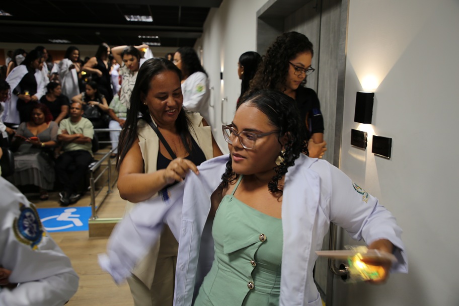Dominique falava sob o olhar carinhoso da família, principalmente do pai, José Maconiel Costa Santos. “Eu sinto muito orgulho e felicidade, tudo. Ela sempre foi dedicada. Desde criança, ela só falava em ser médica, em medicina, essas coisas. Eu vejo o futuro dela como brilhante”, afirmou ele. Este mesmo encantamento era dividido com Júlia Emanuelle, uma linda criança de cinco anos que já brincava com a réplica da lâmpada da cerimônia e se inspirava em seguir os mesmos passos da irmã no futuro. O brilho em seus olhos, certamente refletindo o das lâmpadas, já foi um primeiro passo.