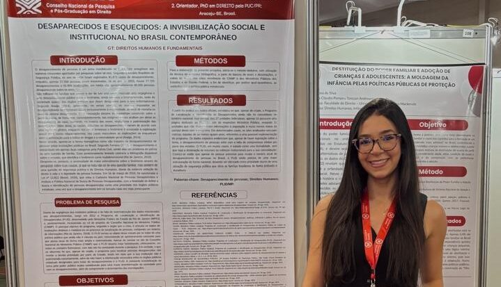 O artigo “Direito humano ao trabalho digno e racismo estrutural: o impacto transformador da Corte Interamericana de Direitos Humanos no combate ao trabalho escravo” foi apresentado pelos professores Augusto César Leite de Resende e Ricardo José das Mercês Carneiro, juntamente com o mestrando José Eduardo Aragão Santos, que também é egresso da graduação em Direito. A lista é completada pelo pôster “Desaparecidos e esquecidos: a invisibilização social e institucional no Brasil contemporâneo”, de autoria da estudante de graduação Marianne Andrade de Oliveira Silva, com orientação do professor Ronaldo Marinho.