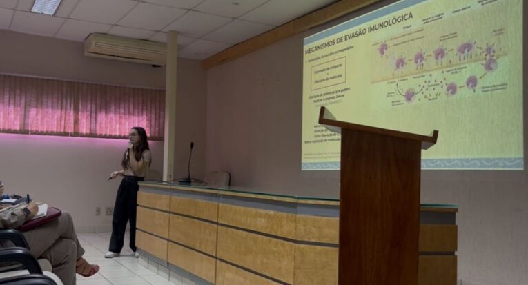 “Todos os períodos me traziam uma nova vontade e possibilidade dentro da área, mas quando eu entrei na Iniciação Científica, ainda no terceiro período, eu passei a enxergar toda a minha trajetória com mais responsabilidade e passei a ter um olhar mais científico dentro do curso. Além disso, eu lembro de ter sido marcada, principalmente, com as aulas de Imunologia, com a professora Ana Paula [Barreto Prata], e Hematologia Clínica, com a professora Isana Leal [Souza], definindo com o que eu gostaria de trabalhar futuramente”, conta a mestranda.
