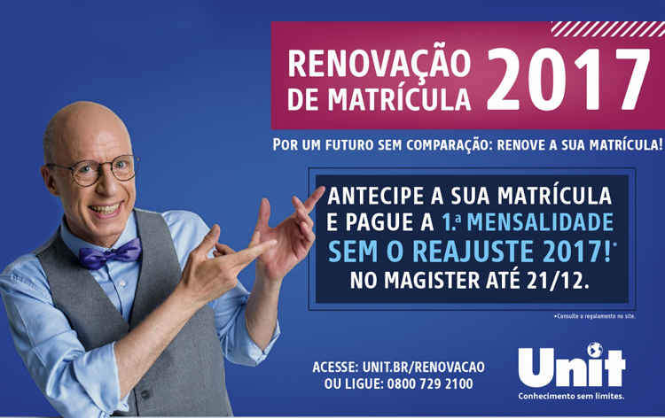 Esse é o motivo pelo qual o Setor de Fidelização mantém a validade do prazo até o dia 21 de dezembro para os alunos interessados em efetuar antecipadamente a matrícula de 2017.1.