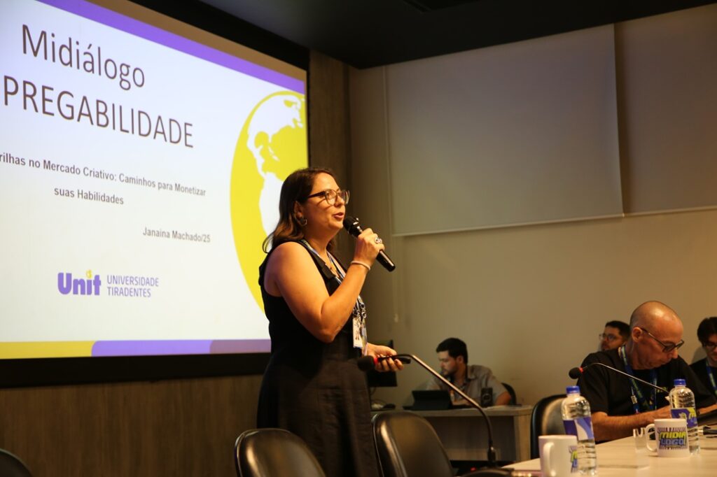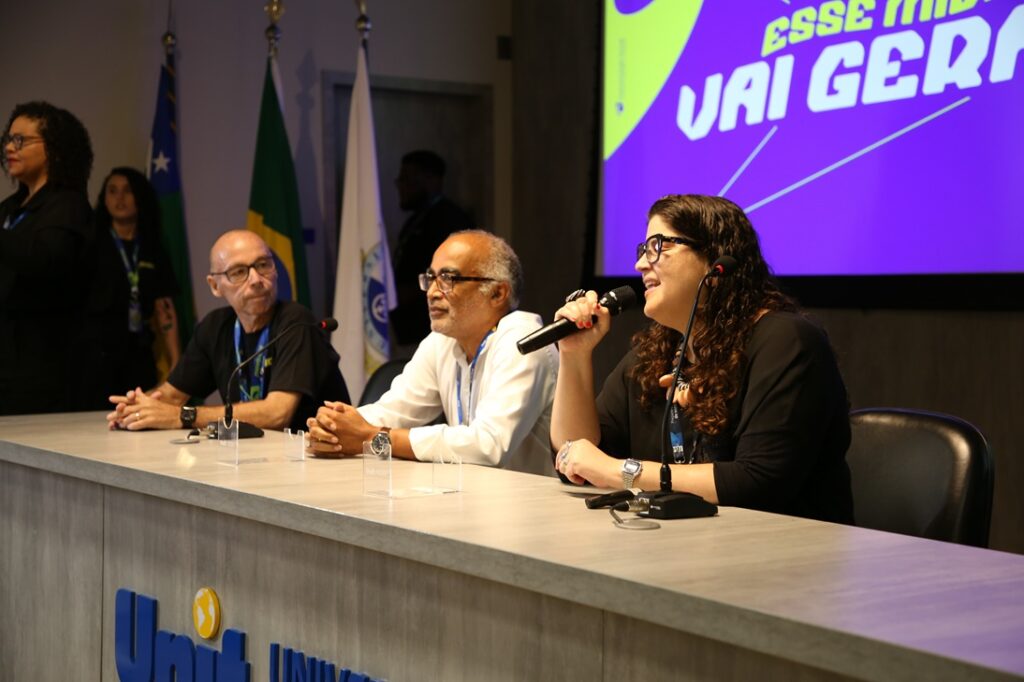 “Hoje em dia, não se faz formação profissional sem que os alunos estejam envolvidos desde o primeiro momento na construção do seu processo criativo. É interessantíssimo ter vocês participando, construindo, formatando uma linguagem nova, de trabalhar no ensino superior, estudar e produzir com os professores. Isso é muito bom, e mais ainda porque estamos lidando com uma coisa que é fundamental para construir o olhar do mundo de hoje: a mídia. Não dá mais para a gente pensar numa construção do mundo e de novas narrativas para explicar esse mundo sem que a mídia esteja presente”, ressaltou o pró-reitor de Graduação e Extensão da Unit, Ronaldo Linhares, em sua saudação aos alunos na abertura do Midiálogo.