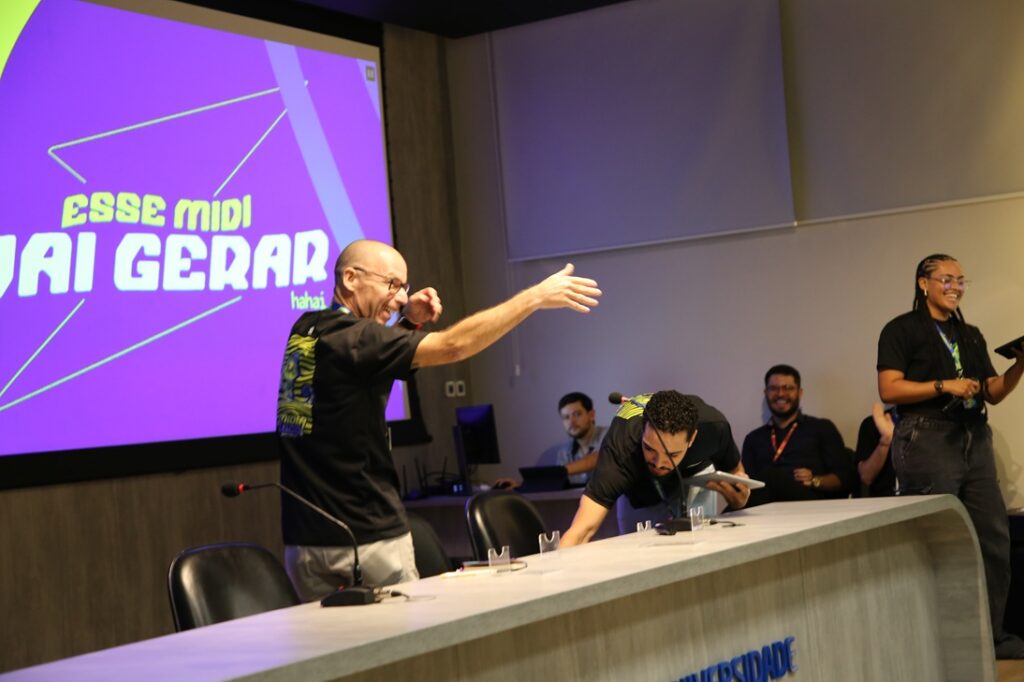 Um dos envolvidos na organização foi o aluno Sandro Bispo dos Santos Júnior, do sétimo período de Publicidade e Propaganda. Ele explicou que todo o planejamento começou no semestre anterior, quando os estudantes dedicaram-se ao aprendizado teórico, antes de começar a fazer tudo na prática. “Isso foi um desafio muito grande, ainda mais um evento que envolve mais de 300 pessoas de público, além das pessoas envolvidas na organização. A gente foi atrás de patrocinadores, de palestrantes que toparam nosso projeto. Então foi algo desafiador, mas essencial para nossa carreira no nosso curso, diz Sandro, destacando a organização e a liderança como habilidades fundamentais para a organização do Midiálogo.