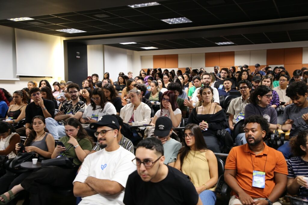 O Midiálogo também atraiu estudantes e egressos dos cursos de Comunicação de outras universidades e faculdades do Estado. Foi o caso de Maria Cândida de Novaes Rocha, que faz o segundo período de Publicidade e Propaganda na Universidade Federal de Sergipe (UFS). Ela já esteve na edição anterior do Midiálogo, feita em maio deste ano, cujo tema foi o uso da Inteligência Artificial no Marketing. “De maneira geral, são muito poucos os eventos de publicidade no Estado, e em épocas muito específicas do ano. Toda a oportunidade de estar em um lugar que fala sobre o meu curso, a minha área de atuação e ainda mais esse tema, que é a área de mercado, me atraiu muito para estar aqui e para participar, ter troca, ter contato com o mercado”, afirmou Cândida.