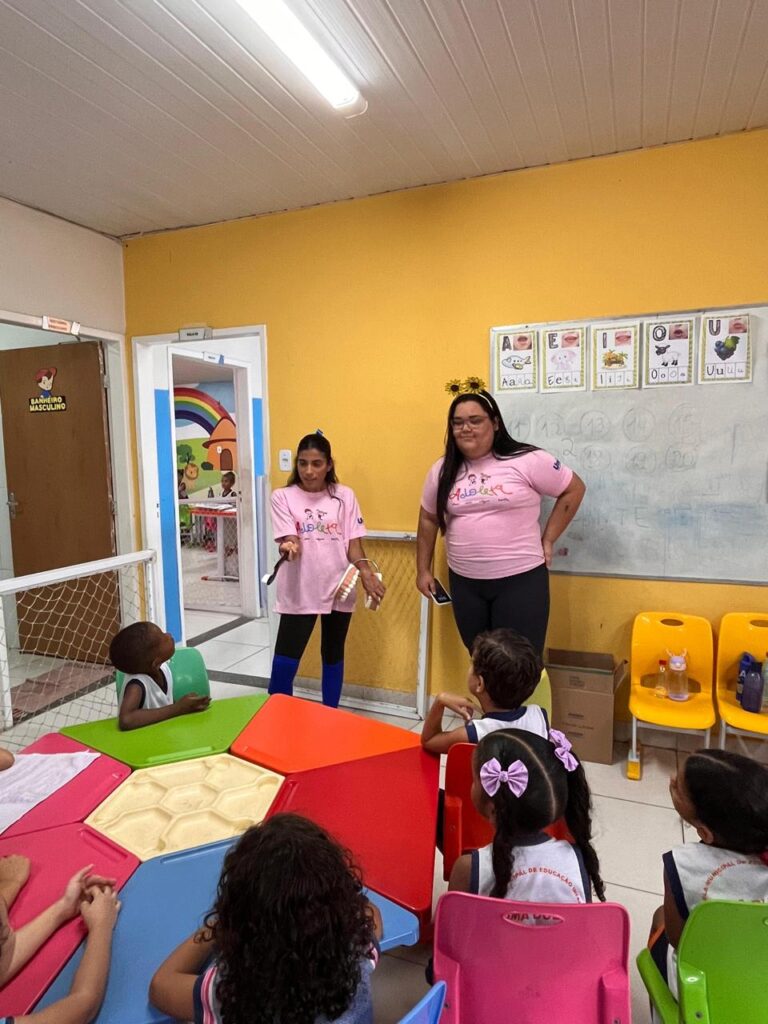 Uma destas participantes é Natália de Oliveira, do sexto período de Enfermagem, que atua como vice-líder do projeto, lidando com a organização e o desenvolvimento das atividades. Ela conta que, antes mesmo de ingressar na faculdade, conheceu o projeto através do perfil no Instagram. “Desde então, tive vontade de participar, pois adoro crianças e essa é justamente a área em que desejo atuar. O projeto tem sido fundamental para o desenvolvimento da minha comunicação, especialmente com crianças. Ele me mostrou a importância de levar educação em saúde para os pequenos e seus familiares, abordando temas relevantes para sua saúde e desenvolvimento. Contribuir com essa missão me faz feliz, pois acredito que, por meio da informação, é possível prevenir diversas doenças e promover uma infância mais saudável”, diz Natália.