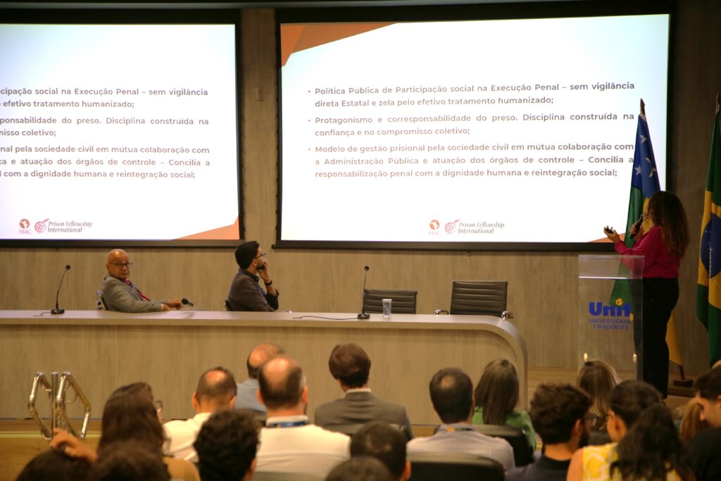 Garantir assistência jurídica gratuita a pessoas privadas de liberdade, apoiar seus familiares e, ao mesmo tempo, aproximar os estudantes de Direito da realidade do sistema prisional são algumas das frentes de atuação do Projeto Reformatório Penal, vinculado ao curso de Direito da Universidade Tiradentes (Unit), que completa 31 anos de atuação. Como parte da programação da 20ª Semana de Extensão (Semex) da Unit, foi realizada uma palestra voltada ao Método APAC (Associação de Proteção e Assistência aos Condenados), conduzida pela advogada e diretora-geral da Fraternidade Brasileira de Assistência aos Condenados (FBAC), Tatiana Flávia Faria de Souza.
