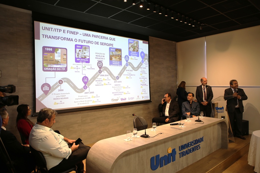 Esta parceria começou no ano 2000, dois anos após a fundação do ITP, entidade científica sem fins lucrativos sediada no Campus Farolândia da Unit. Na ocasião, foi aprovado o primeiro projeto junto à Finep: a implantação e desenvolvimento de redes neurais artificiais nos campi da instituição. Depois, entre 2001 e 2005, outras duas iniciativas contaram com o apoio da empresa pública: a implantação do Laboratório de Estudos Ambientais (LEA) e a formação da Rede Sergipana de Incubadoras, com a participação da Unit, do ITP e de outras instituições do estado.