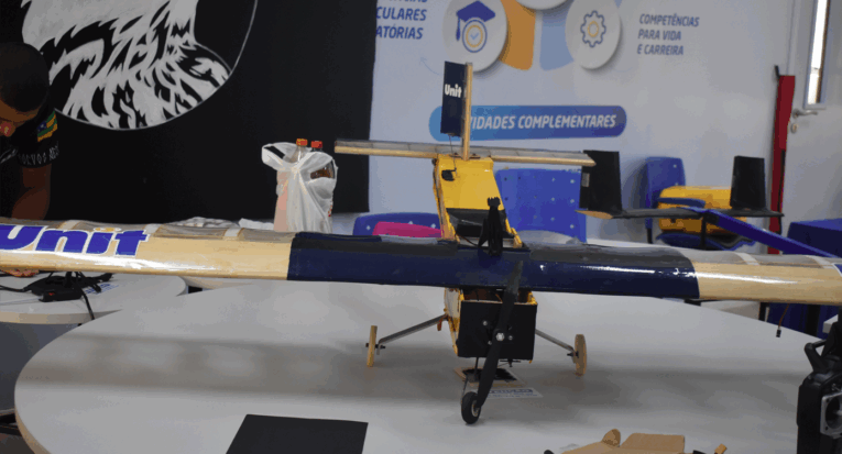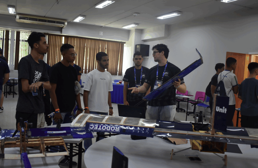 Durante o percurso, os alunos também participaram de atividades interativas, como a montagem de pequenos aviões realizada pela equipe Corvos, que demonstra conceitos de mecânica e engenharia de forma divertida e didática.