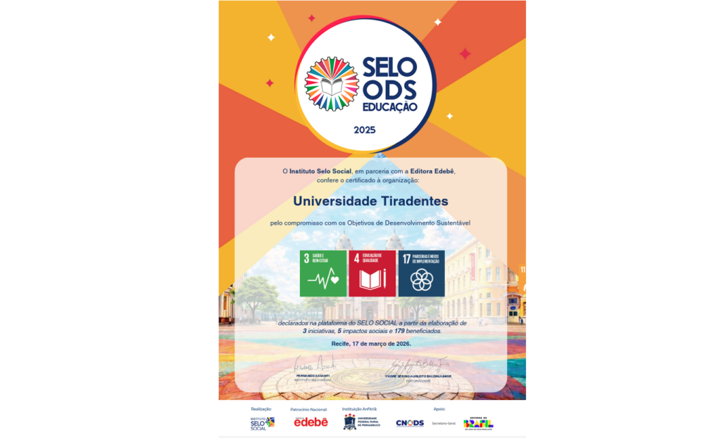 A Universidade Tiradentes (Unit) é uma das 129 instituições de ensino reconhecidas com a certificação do Selo ODS Educação. A cerimônia aconteceu no último dia 18, em Recife (PE), reconhecendo a participação de instituições de ensino básico e superior em ações comprometidas com os Objetivos de Desenvolvimento Sustentável (ODS) da Agenda 2023 da Organização das Nações Unidas (ONU).