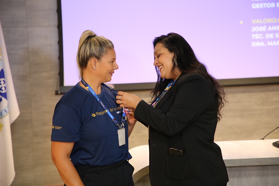 O vice-reitor também deixou uma saudação de elogio e agradecimento aos homenageados, destacando que eles representam todos os colaboradores que se identificam com os valores do Grupo. “Se muitos de vocês estão aqui com tanto tempo de casa, é porque eu entendo que a gente tem convergência de valores. Eu fico muito feliz com isso. Levem esse broche no peito como um grande símbolo de reconhecimento da Universidade Tiradentes pela atuação de vocês, convergindo com nossos valores, porque é isso que vocês entregam a todas as pessoas que se aproximam da gente. É uma grande honra ter uma equipe que realmente está comprometida com os nossos valores e que a gente tenha longevidade nas nossas relações”, parabenizou.