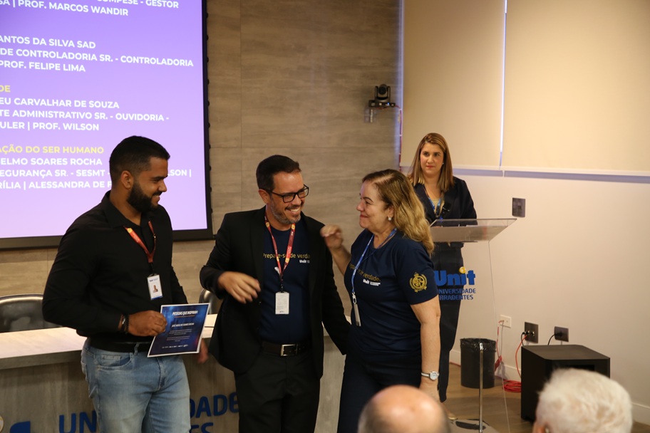Os vencedores também foram cumprimentados pelo reitor da Unit Pernambuco, professor Diogo Galvão, que também falou sobre a importância dos valores institucionais. “Esses valores representam um jeito de ser do Grupo Tiradentes. São valores traduzidos pela forma como o professor Uchôa sempre trabalhou e conduziu com dedicação. A gente sabe que esses pilares nos movem e não estão apenas no papel, porque eles são de verdade. Por isso, a importância de estar muito honrado aqui em participar e entregar o prêmio aos professores e colaboradores que representam muito da nossa instituição”, afirmou Diogo.