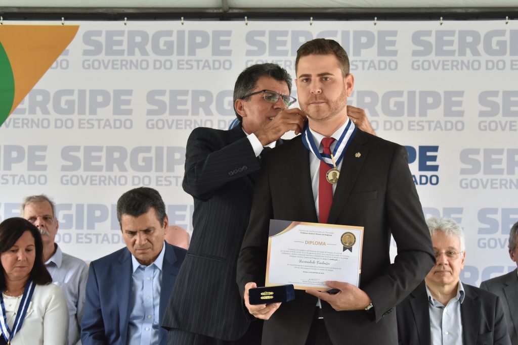 “É uma homenagem muito significativa para a instituição de ensino. Entre as iniciativas, a Unit desenvolve programas de iniciação científica, incentivando estudantes de graduação e contribuindo na formação de novos pesquisadores e recursos humanos mais qualificados. Além disso, colabora com a produção de pesquisas de alta qualidade”, comenta o pró-reitor de Pós-Graduação Pesquisa e Extensão da Universidade Tiradentes, doutor Diego Menezes. Na ocasião, Diego representou o reitor da Unit, professor Jouberto Uchôa.