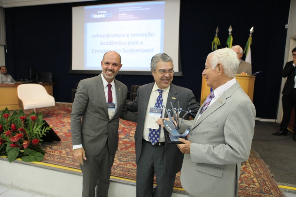 Presente na solenidade, o reitor da Universidade Tiradentes, professor Jouberto Uchôa de Mendonça agradeceu a participação e envolvimento dos gestores no FinancIES. “Os senhores, hoje, são peças fundamentais da instituição que conduz a universidade. Nós precisamos mostrar ao Brasil que a instituição privada não apenas paga os impostos, mas produz emprego, formação profissional de qualidade e enche esse país de pessoas qualificadas e pensantes. Esta terra tem imenso orgulho de registrar a presença dos senhores”, enfatiza. Na ocasião, a Unit também recebeu um troféu de homenagem por sediar o evento.