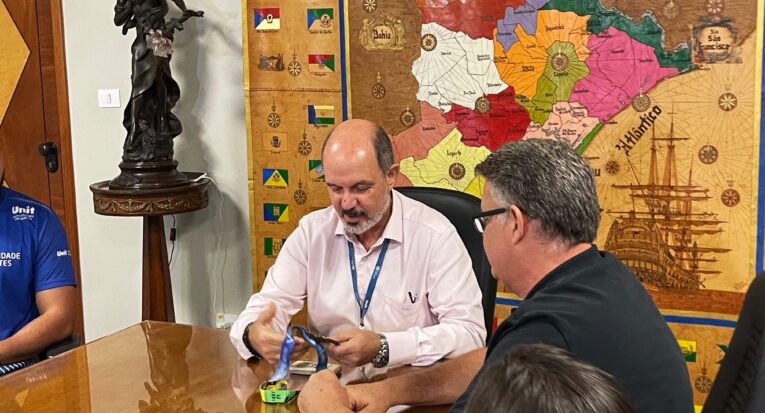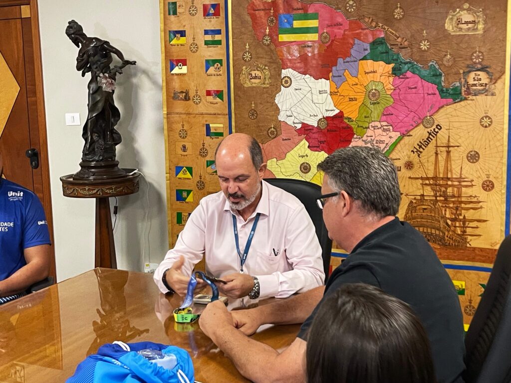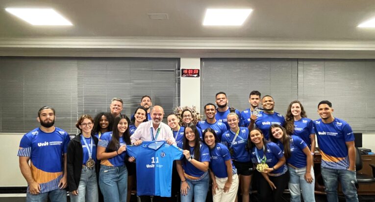 Como forma de agradecimento pelo apoio da instituição, nesta terça-feira, 16, parte da delegação do esporte universitário da Unit entregou uma medalha e uma camisa do time ao vice-reitor, professor Jouberto Uchôa Junior. Para ele, celebrar todas as conquistas é motivo de muita alegria. “A gente fica muito feliz! Hoje são mais de 100 atletas, todos alunos, que participam dos JUBs com brilho nos olhos. Com isso, vêm as medalhas! Ouvir o feedback deles hoje pela oportunidade que tiveram de participar desse campeonato mais uma vez nos enche de felicidade. O mínimo que a gente pode fazer é dar apoio a esses jovens para que eles usem a infraestrutura e serviços da Universidade na sua plenitude, e uma dessas frentes importantes é o esporte, para que cuidem do corpo, da mente e do espírito”, aponta Uchôa Junior.